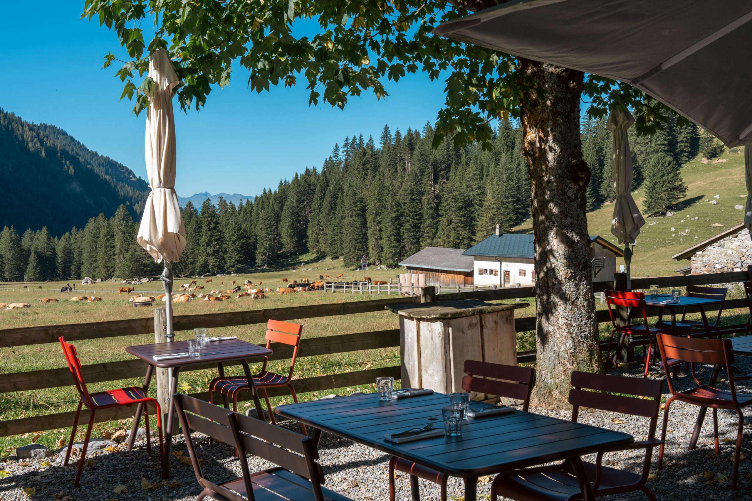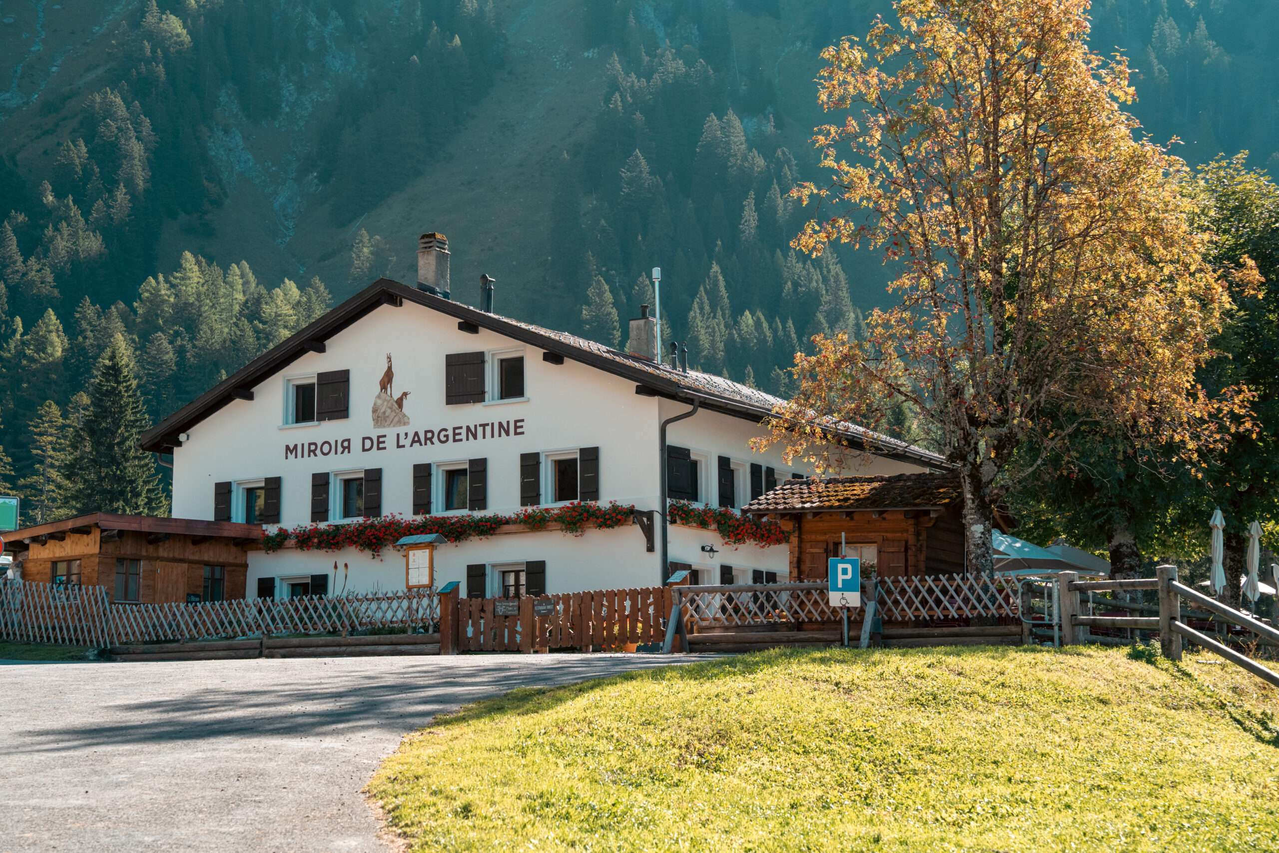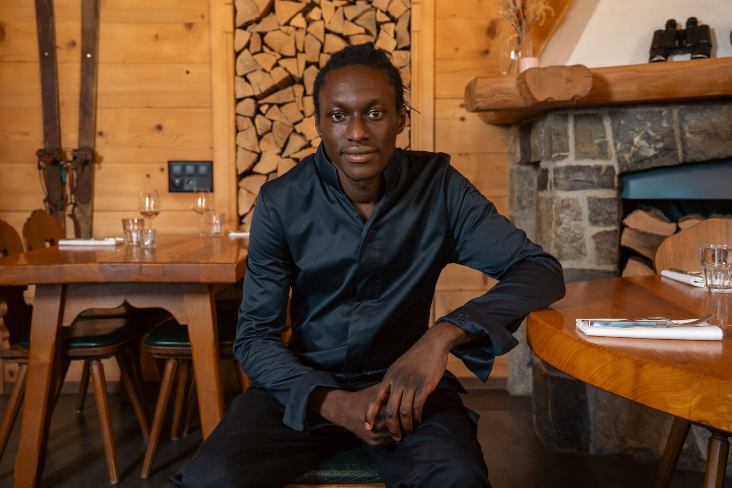 À quelques encablures de Villars, la route s’arrête et seules quelques maisons vous accueillent que les vaches alentours contemplent paisiblement. Là Joelle Deburaux a installé à Solalex tout ce qu’il faut pour accueillir randonneurs et gourmets. La partie refuge propose dans un chalet intimiste des raclettes au feu de bois, tandis que la bâtisse nommée le Miroir d’Argentine comprend des chambres d’hôtel confortables et une table gastronomique. Âgé de 33 ans, Simon Bely est le chef du restaurant Le Miroir d’Argentine depuis deux ans, après avoir rejoint les cuisines de Solalex en 2019. Son style allie authenticité, simplicité et raffinement, avec une subtile audace dans les détails.