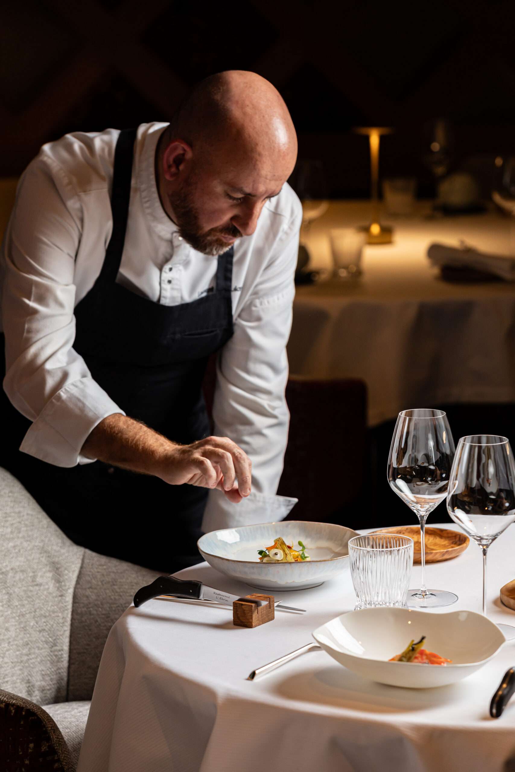 Ce n’est ni plus ni moins dans l’hôtel 5 étoiles Le Kaïla, au centre de Méribel, que se niche le restaurant L’Ekrin. Laurent Azoulay est un de ses grands chefs qui est passé par de grandes maisons : entre Alain Passard, Pierre Gagnaire, Jacques Chibois ou encore Alain Ducasse, Laurent a su faire ses preuves là où il est passé. À l’Ekrin, le chef mêle sa région natale, la Provence à sa région de cœur, la Savoie. Deux menus, deux univers : le menu Korti — qui signifie “jardin potager” en patois savoyard — célèbre le végétal à travers un parcours en 9 temps, mettant à l’honneur légumes, céréales, fruits et condiments de saison. Le menu Ekrin, quant à lui, marie avec élégance les saveurs de la Provence et de la Savoie pour une expérience gourmande.