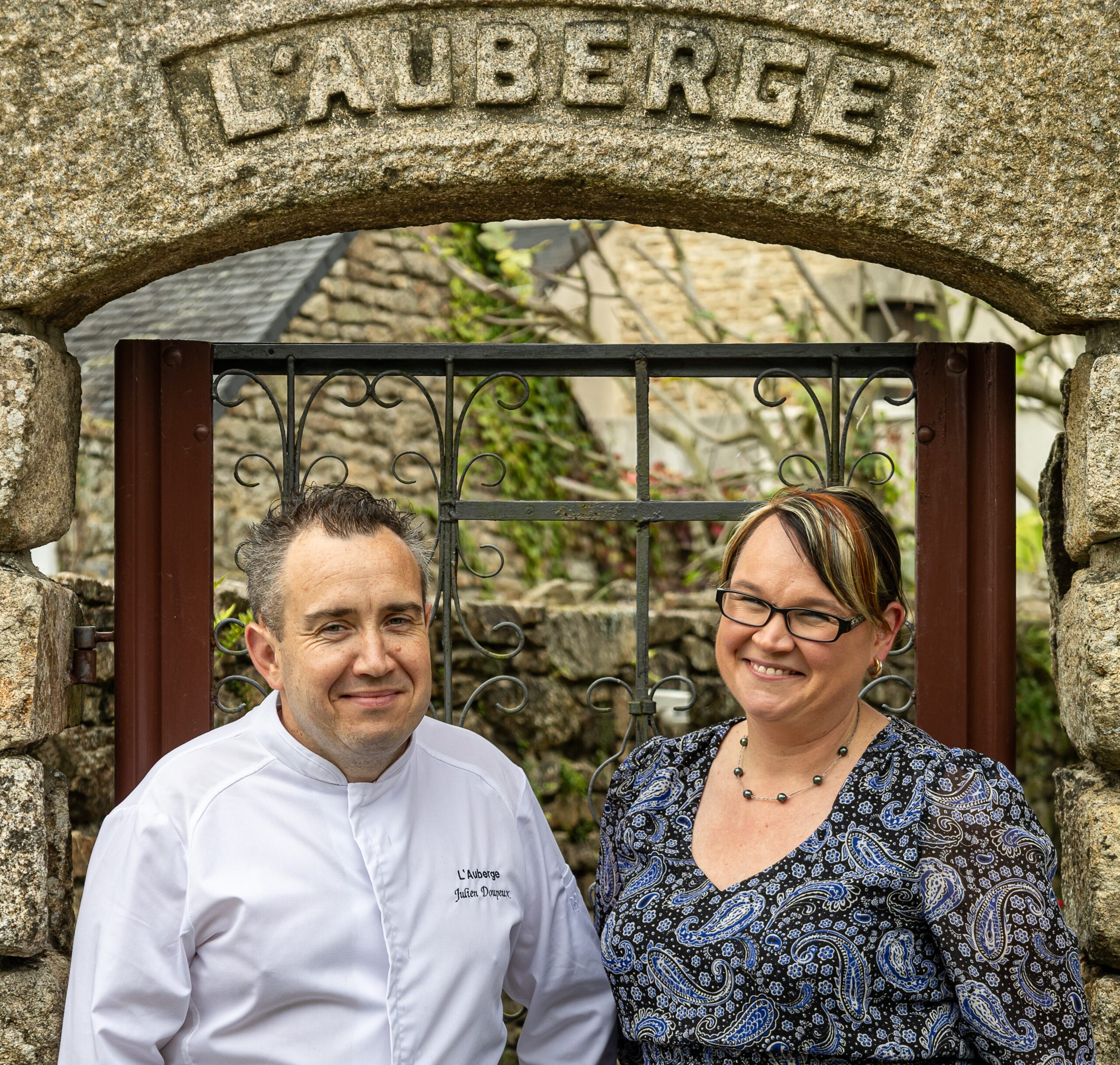 À Sainte-Anne-d’Auray, sur la route de Vannes, les Maisons Glenn Anna vous accueillent au 56, à L’Auberge, vous proposant une cuisine gastronomique raffinée, accompagnée de 16 chambres spacieuses et lumineuses. Gérée par Julien Doupeux et Claire, la cadette de la famille, ils perpétuent l’héritage gastronomique de l’Auberge des Maisons Glenn Anna. Originaire d’Auvergne, Julien a suivi un parcours complet en cuisine, du CAP au bac professionnel, avant de se spécialiser en pâtisserie chez Régis Marcon à Saint-Bonnet-Le-Froid. Claire, quant à elle, vous accueille dans cette auberge familiale en proposant une cuisine subtile mêlant les saveurs bretonnes et auvergnates, avec une touche d’acidité.